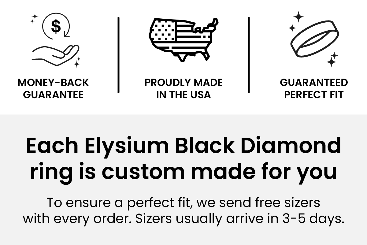 Elysium Ares - Truly unique, this ring is a Solid Black Diamond ring w/ a vibrant opal inlay. Each of our rings is made of millions of pressed diamond crystals formed into a solid diamond band that becomes black due to the enormous pressure & heat. Elysium Black Diamond is rated a 10 on the Mohs scale, making it the hardest and most-scratch resistant material on earth, the perfect symbol of your commitment.